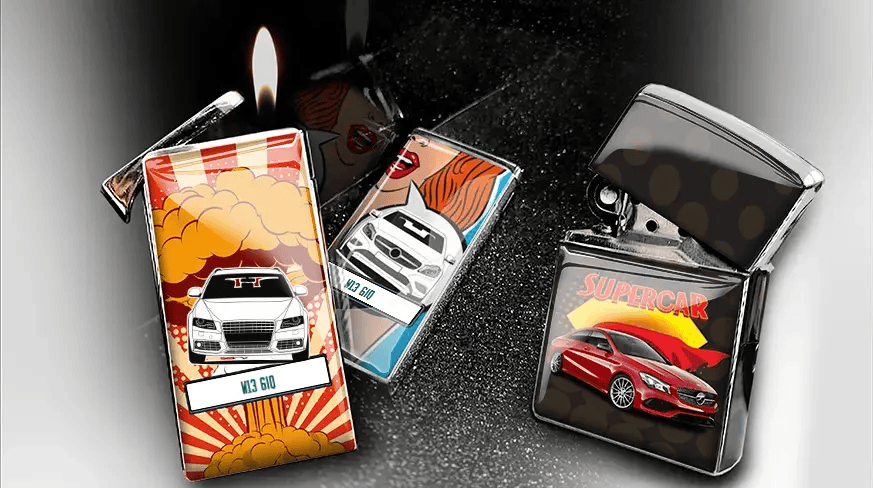 WE MAKE ORIGINAL GIFTS - LIKE THESE COMIC LIGHTERS - FOR YOU! ... Refresh preview ... Lighter With Car Personalise your lighter here Get your individual lighter with the motif of your choice (car or photo) in a cool design. Many design variants in the range. Choose according to your preferences. Manufactured in probably 3 days Your lighter with car and number plate will be ready for shipment within 3 working days after receipt of order. Stylish and practical: best gift for a car fan Our items are practical and original gifts - for different occasions. They are perfect for car fans or those who love to drive. CREATE LIGHTER HERE Personalise your lighter here! Individual production Perfect as a gift Practical benefit Fast delivery Made in Germany falsefalse More products from Auto4Style Feedback from our customers 0.0 0.0 out of 5 stars (based on 0 reviews) Excellent0%Very good0%Average0%Poor0%Terrible0% Show more ratings Write a new Review