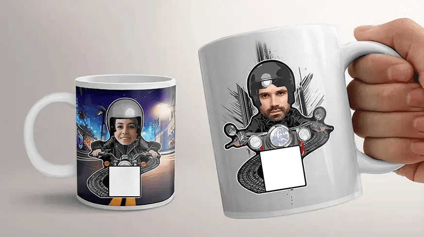 Tá éagsúlacht dearaí galánta cruthaithe ag ár ndearthóirí grafacha táirgí cumasacha. Socraigh tú féin cén mhóitíf a mhaisneoidh do muga pearsantaithe le marcaí gluaisrothair!
